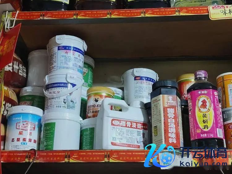 某调料店一角,排骨增香粉25元/罐,猪骨高汤30元/罐