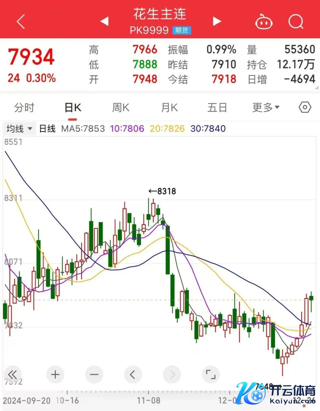 昨日,花生期货冲高回落,主力合约小幅收涨,轨则“六连阳”。
