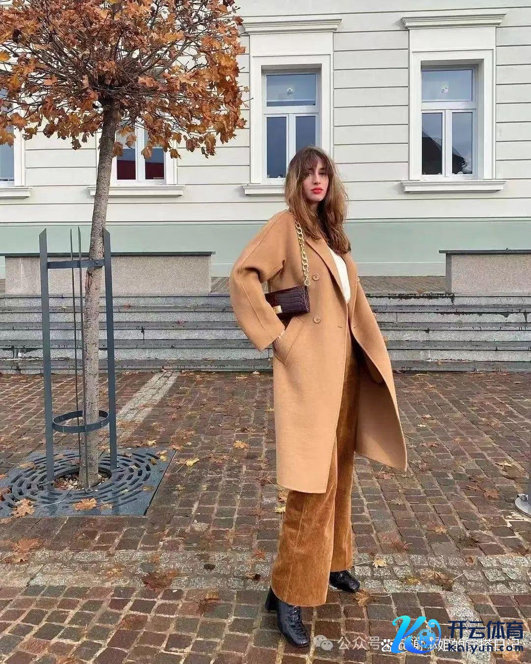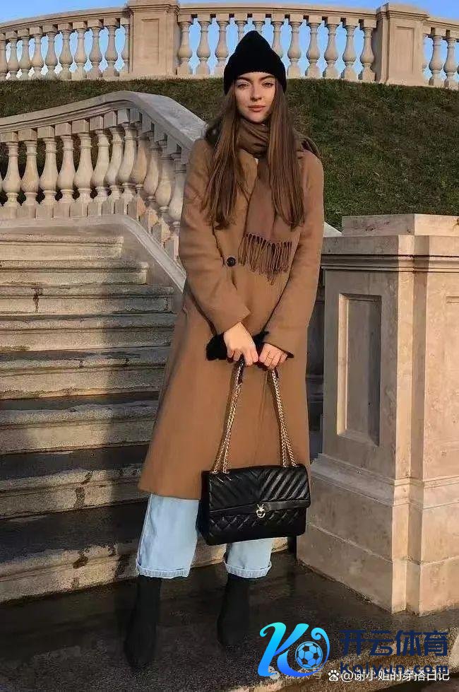 驼色大衣搭配牛仔裤轻柔而不失亮堂,