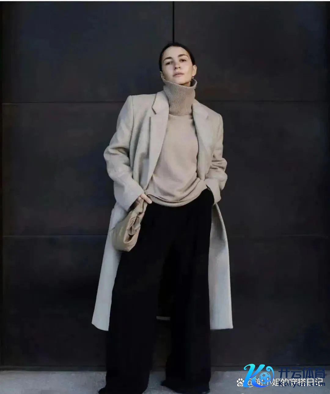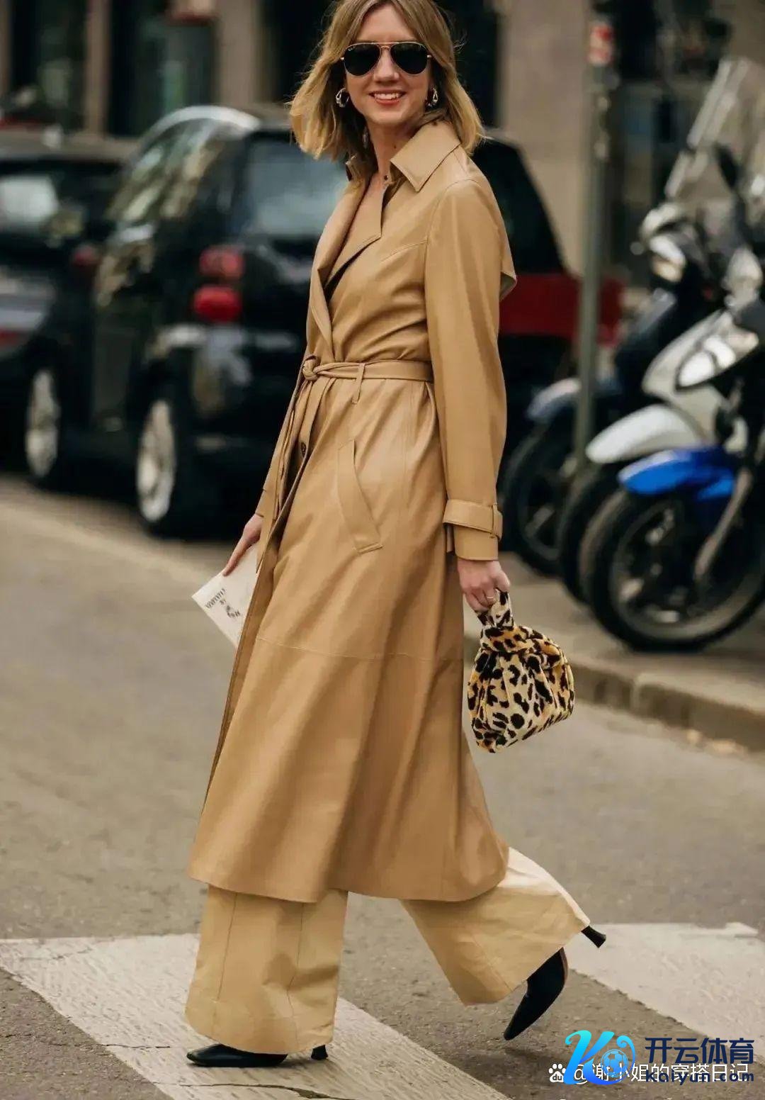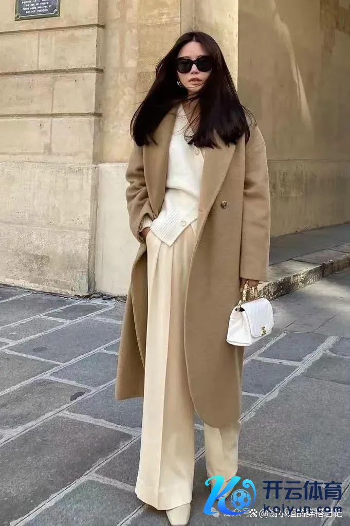 与驼色大衣的畅通线条酿成对比,