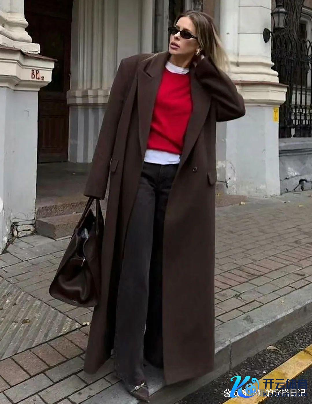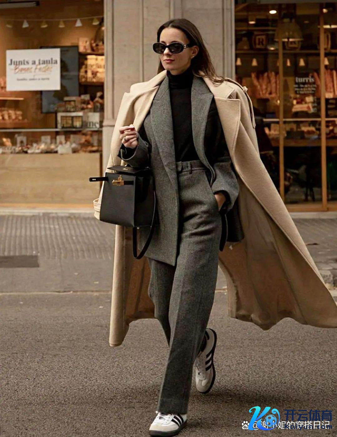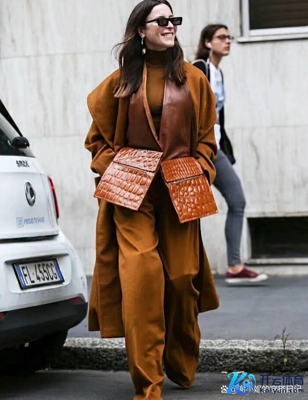 与驼色大衣的畅通线条酿成对比,