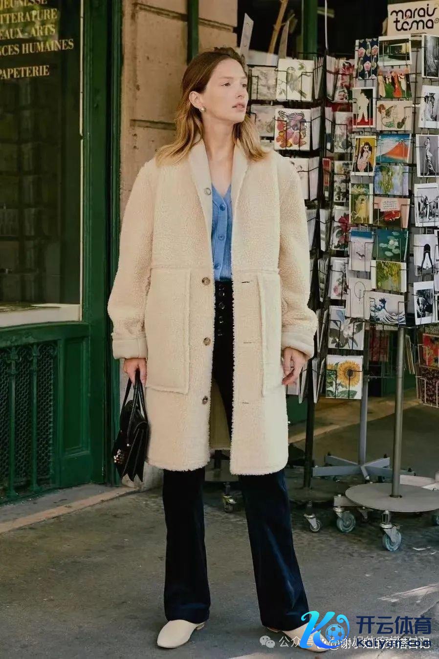 或者将毛绒大衣与牛仔阔腿裤会聚会,