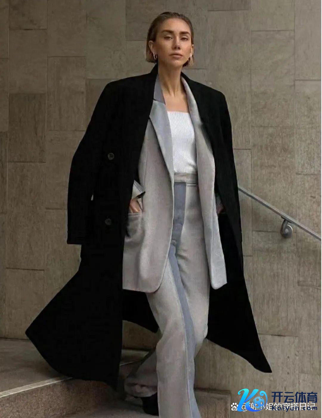 深灰色大衣与浅灰色内搭的组合,